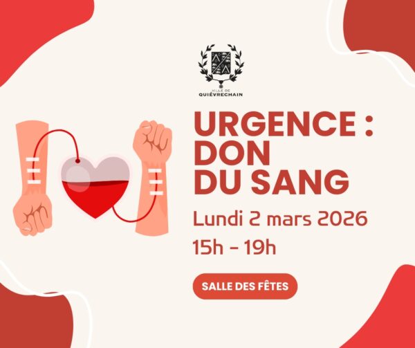 🚨DON DU SANG – MOBILISATION GÉNÉRALE Une collecte de sang est organisée le lundi 2 mars, de 15h à 19h, à la salle des fêtes de Quiévrechain. Avec ou sans […]