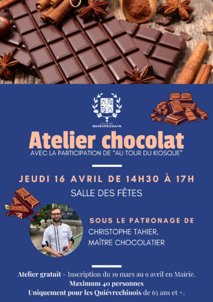 🍫 Atelier chocolat à Quiévrechain ! Le CCAS de Quiévrechain propose aux Quiévrechinois de 65 ans et plus un atelier chocolat gourmand avec la participation de “Au Tour du
