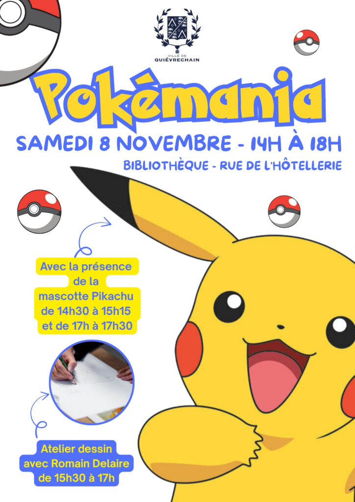 ⚡ Pokémania débarque à Quiévrechain ! ⚡ Samedi 8 novembre, de 14h à 18h, la bibliothèque (rue de l’Hôtellerie) se transforme en véritable arène Pokémon ! 🏟️ 🐭 […]