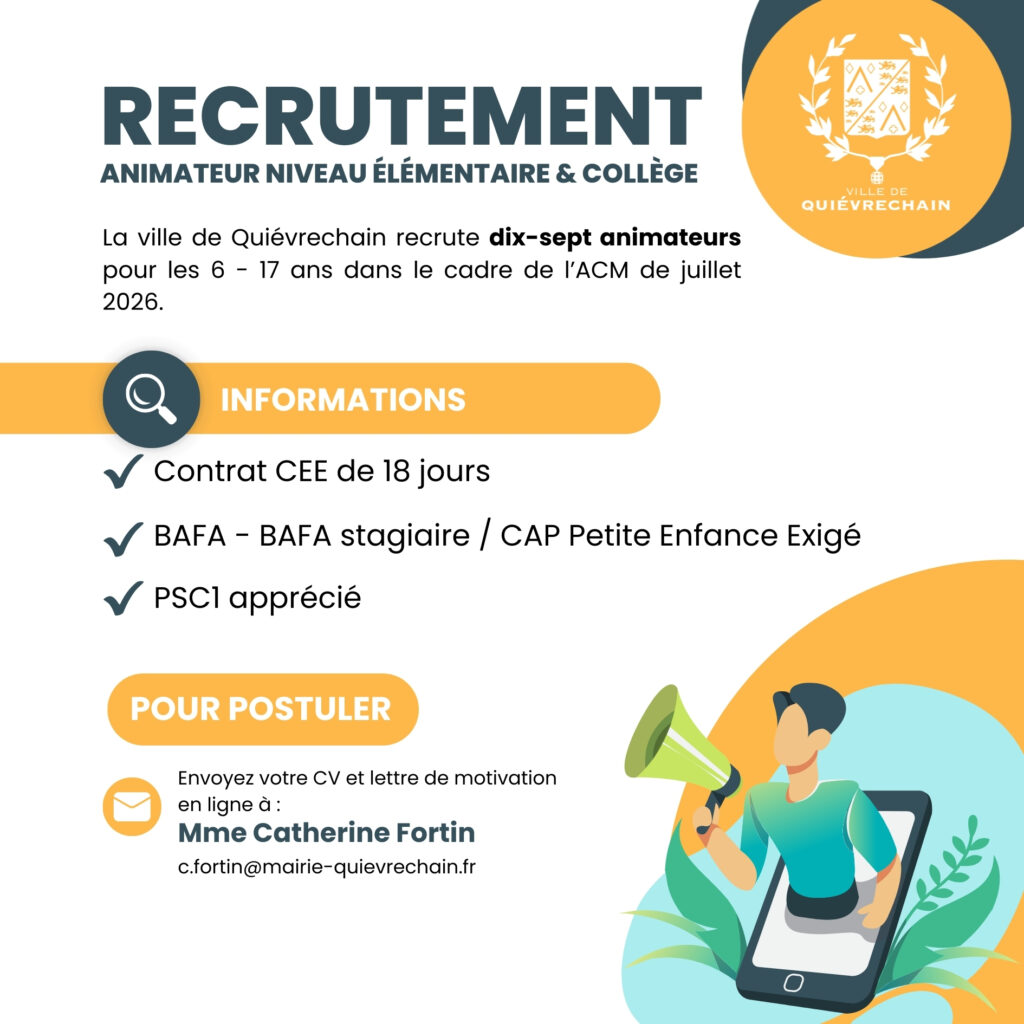 La ville de Quiévrechain recrute pour l’ACM de juillet 2026