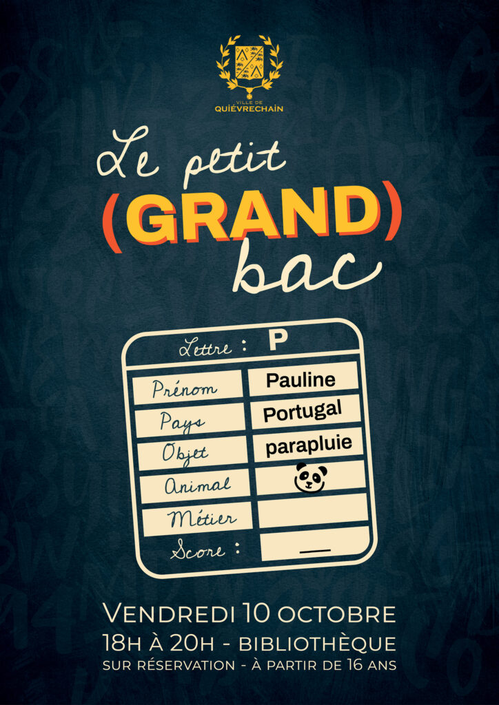 Le petit (grand) bac le 10 octobre à la bibliothèque