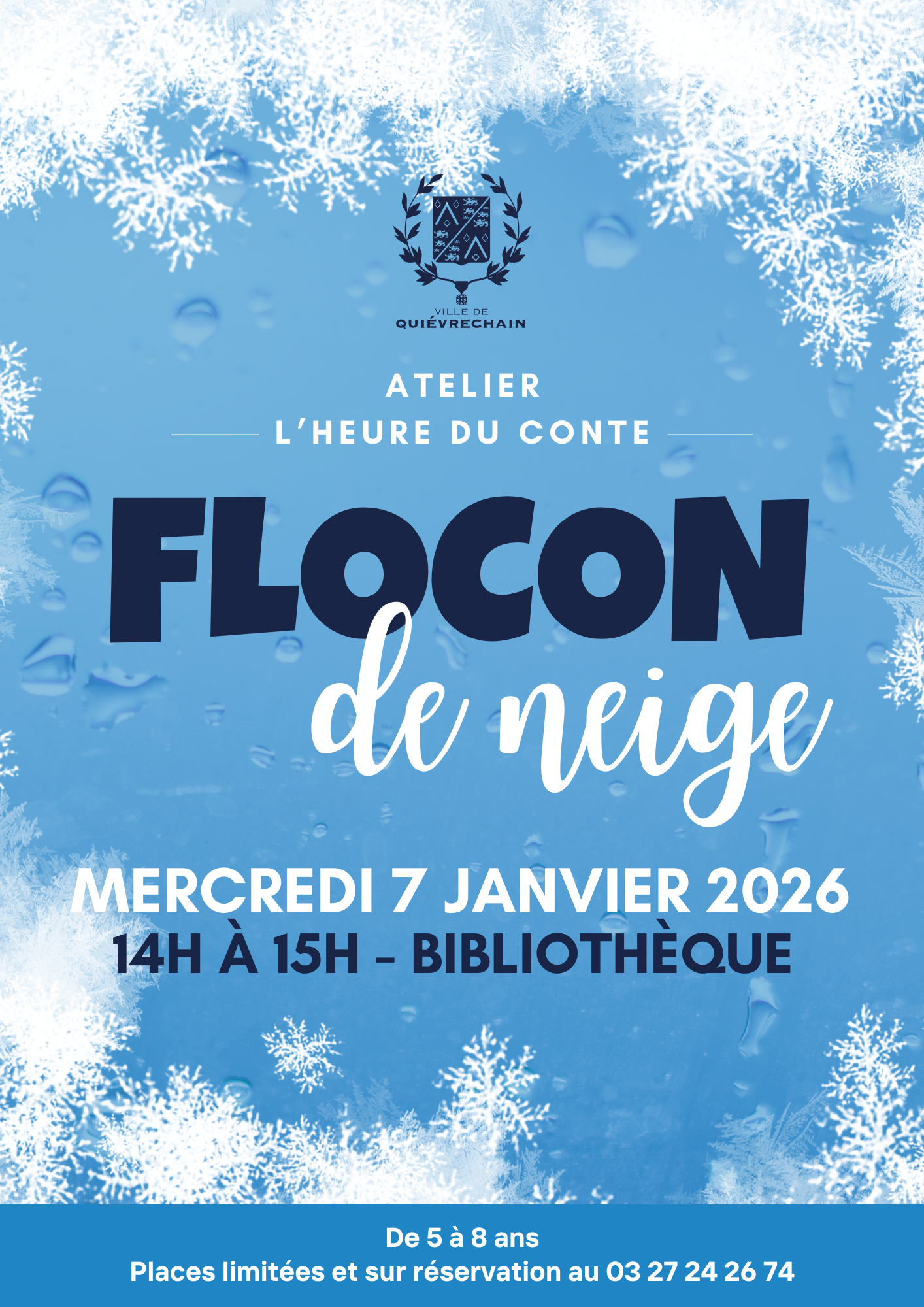 La bibliothèque municipale propose une heure du conte à destination des enfants de 5 à 8 ans, sur le thème « Flocon de neige ».