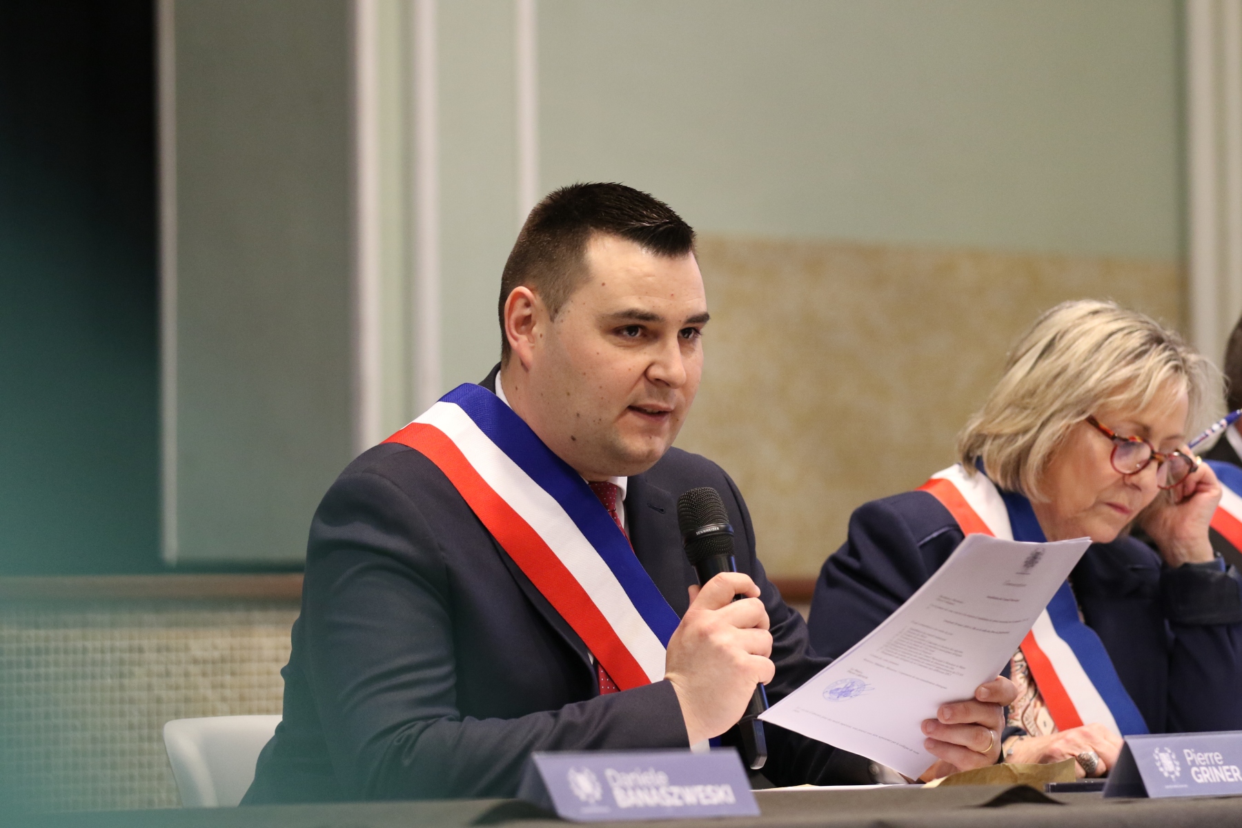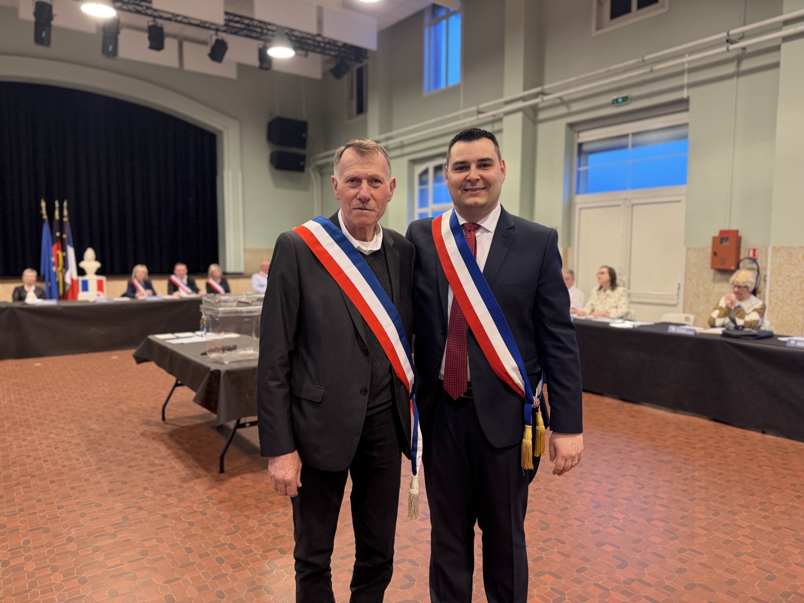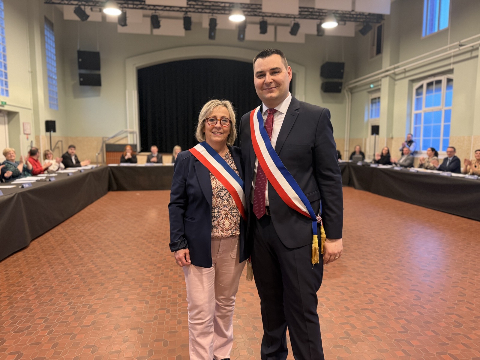La séance d’installation du conseil municipal s’est tenue vendredi 20 mars à 18h, en la salle des fêtes de Quiévrechain, marquant le début du nouveau mandat, la séance était présidée par la doyenne du conseil, Danièle Banaszewski.